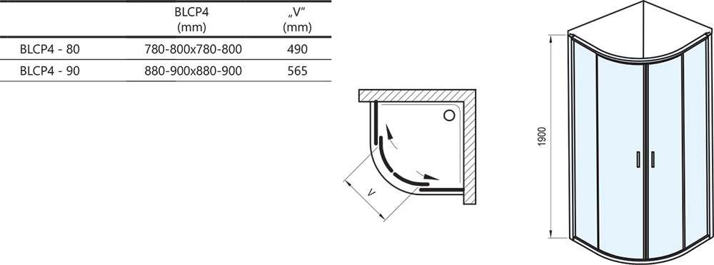Výrobok tvoria dva pevné rovné diely a dva ohýbané diely ako posuvné dvere. Montuje sa do obloženého rohu kúpeľne na vaničky Ravak Ronda, Elipso, Elipso Pro, Elipso Pro Flat, Elipso Pro Chrome alebo priamo na podlahu so zabudovaným odtokovým žľabom či podlahovým vpustom.
