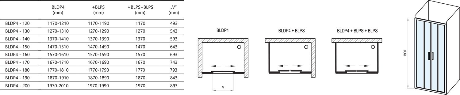 Výrobek se montuje do obložené koupelny (ideálně do vyzděné niky nebo v kombinaci s pevnou stěnou BLPS) přímo na podlahu se zabudovaným odtokovým žlabem či podlahovou vpustí. Kombinací se dvěma pevnými stěnami typu BLPS, vytvoříte sprchový kout ve tvaru „U“. K tomuto výrobku nelze použít nastavovací profil BLNPS.