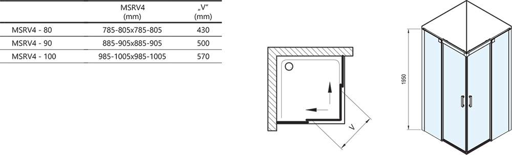 Výrobek se skládá ze dvou rovných pevných dílů a dvou rovných pohyblivých dílů, které tvoří posuvné dveře. Montuje se do obloženého rohu koupelny přímo na podlahu se zabudovaným odtokovým žlabem či podlahovou vpustí.