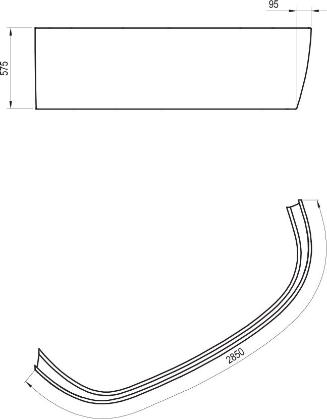 • V rozměru: 2850 × 575 mm