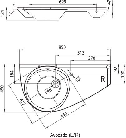 Umyvadlo Avocado je dodáváno s přepadem. Instaluje se na zeď, přičemž při umístění nad užší stranu vany Avocado zabere minimální prostor. Pro ucelené řešení a designový soulad koupelny doporučujeme umyvadlo kombinovat s ostatními výrobky konceptu Avocado (vanou Avocado, stojánkovou baterií Ravak) a dalšími výrobky Ravak. Montážní sada (připojovací hmoždinky, vruty, atd.) včetně krytky přepadu je součástí dodávky.