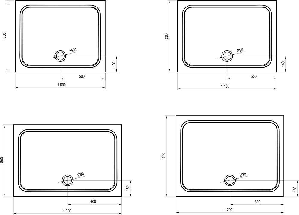 Obdélníkové vaničky nabízí velký vnitřní prostor, kde si můžete užívat i společnou sprchu ve dvou.